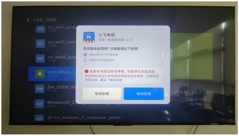 8、返回步骤4,再次点击 “小飞电视” 的安装包