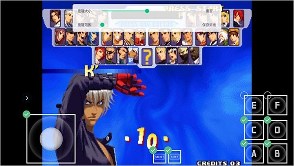 游戏控制采用虚拟按键方式,同时也支持手柄、摇杆等外接设备。