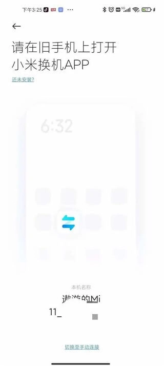 以旧手机(这里以小米手机为例),打开后新机创建一个热点;旧机需安装小米换机应用,进入界面后找到本地释放的热点名称并选择连接。