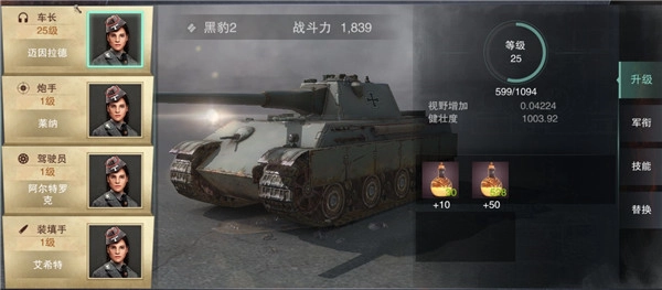 培养成员同样能提升坦克的性能,此外还可以让成员学习各类不同技能,以此获取更丰富的战场作战能力。