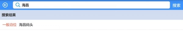1、只需点击右上角的放大镜图标,进入搜索界面后,直接输入目的地的中文关键字、拼音,或是目标船舶的MMSI码、中文船名、拼音船名均可,随后点击搜索按钮。举例来说,若要查找江都港海昌码头,仅需输入“海昌”这两个关键字,点击搜索就能找到对应的结果。