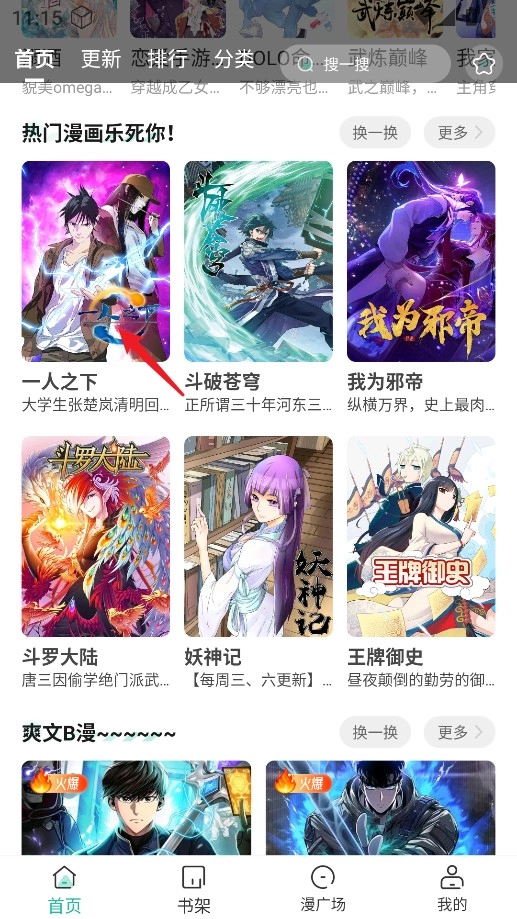 进入首页后,你可以通过更新、排行、分类这几个板块挑选喜欢的漫画,也能直接搜索快速找到目标内容。