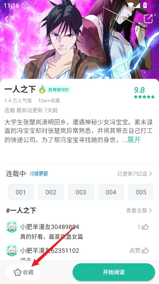 4、进入详情页后点击左下角“收藏”即可加入书架。