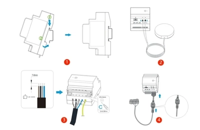 把GroHome Manager-X的卡扣卡在交流配电箱的标准导轨上。按下GroHome Manager-X的顶部,让卡扣和导轨卡紧,接着轻轻晃动GroHome Manager-X,检查一下是否安装稳固。