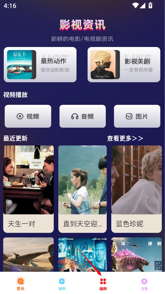 1、这款软件除了可以观看各类节目外,还具备视频剪辑功能,大家点击下方的“便捷”按钮即可。