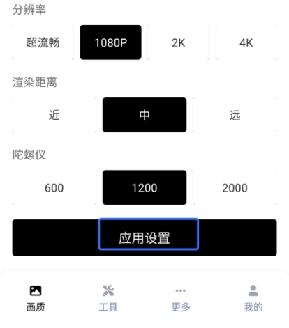 2、同时还支持修改分辨率、渲染距离、陀螺仪,设置好点击应用设置