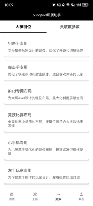 1、点击【更多】选项,然后在大神键位里选择iPad专用布局