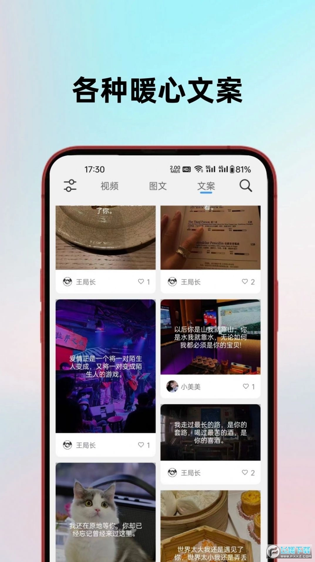 圈子素材是一款专为安卓手机打造的图片文字素材工具库应用,丰富多样的实用功能供用户探索,还有各类角色可供挑选,用户只需一键操作就能轻松创作,生成的原创壁纸更是高清精美。如果对这款软件感兴趣,不妨点击体验一番!