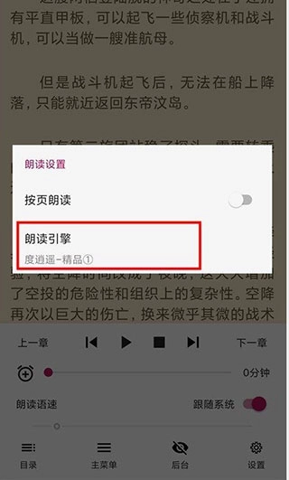 长按下方的【朗读】按钮,即可进入朗读设置界面,在该界面中可以选择不同的朗读引擎。