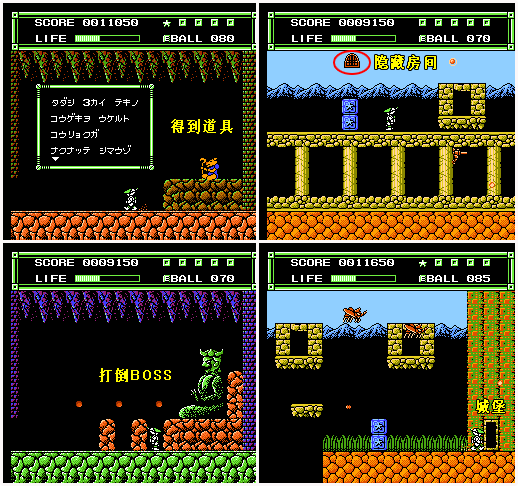 ※第一个宝物屋里可得到弹球,不建议拿,否则对付BOSS会很吃力。