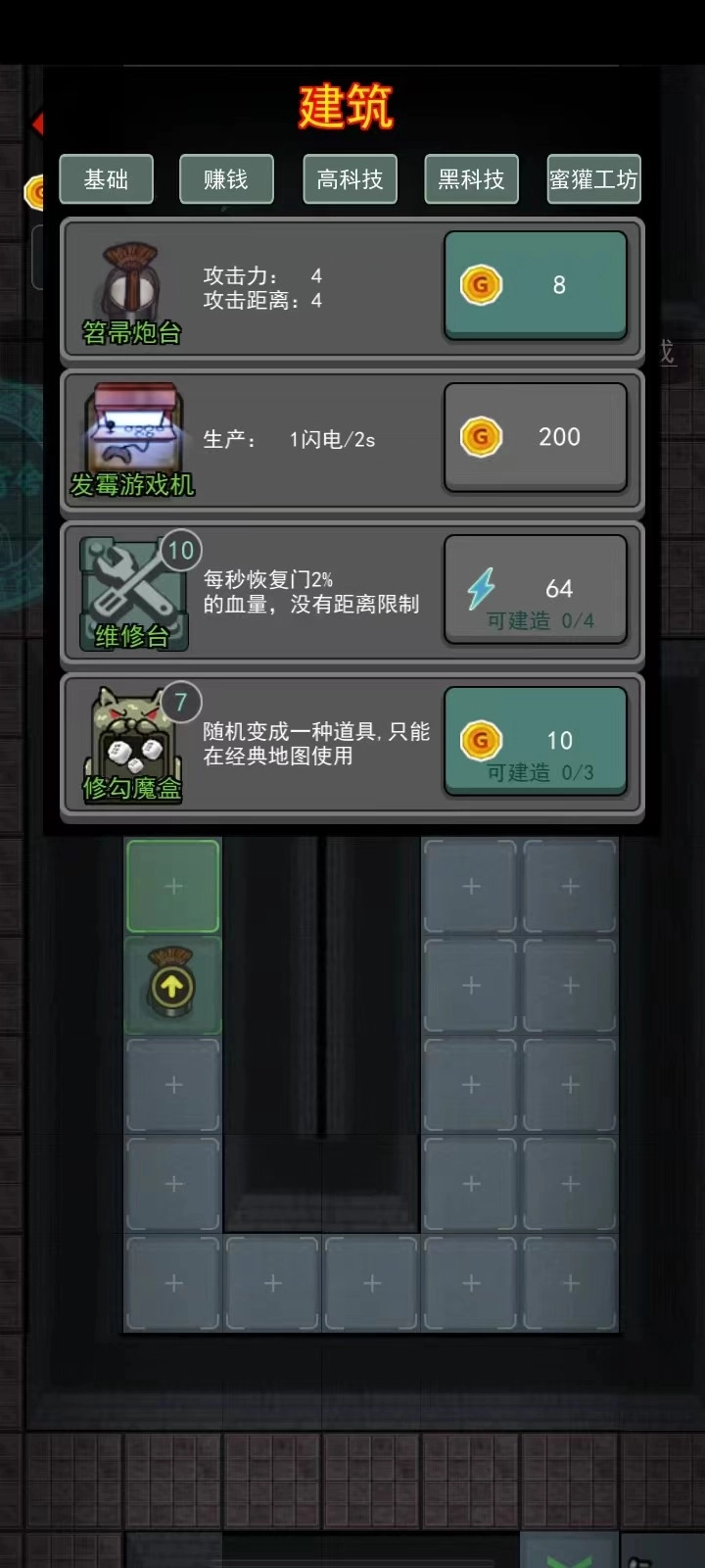 6、在空地上建造一些建筑来攻击猎梦者;如果拥有金币,还能对这些建筑进行升级,升级后它们的伤害会变得更高。