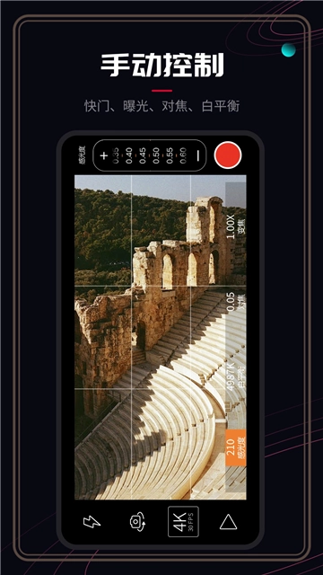 手动控制曝光、快门、感光度、对焦和白平衡