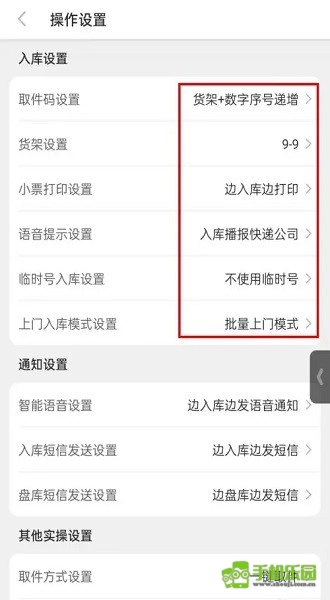 进入后,找到“入库设置”,把下面的设置都完成下;