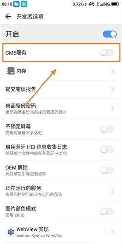 请依次点击“系统”、“开发者选项”和“GMS服务”这几个选项;