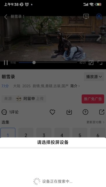 接下来选择对应的投屏设备就可以了,需要注意的是,手机和要投屏的电视一定要连接在同一个WiFi网络中,不然系统会显示“暂无设备”的提示。