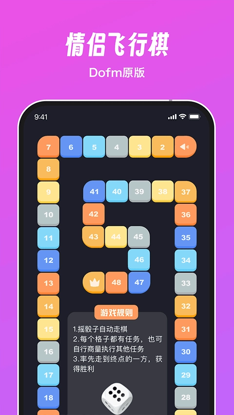 dofm飞行棋是一款深受情侣用户喜爱的双人互动小游戏软件,主要面向年轻情侣群体。它以飞行棋玩法为基础,融合经典游戏元素与创新互动功能,能有效提升情侣间的默契度,为约会时光注入浪漫与欢乐。此外,软件多种浪漫氛围灯效及升温小游戏,可营造温馨甜蜜的氛围,趣味性十足,有需要的用户不妨在本站体验使用。