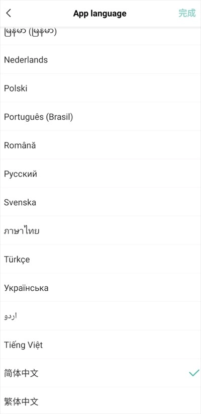4、然后在这里往下滑动,点击选择【简体中文】