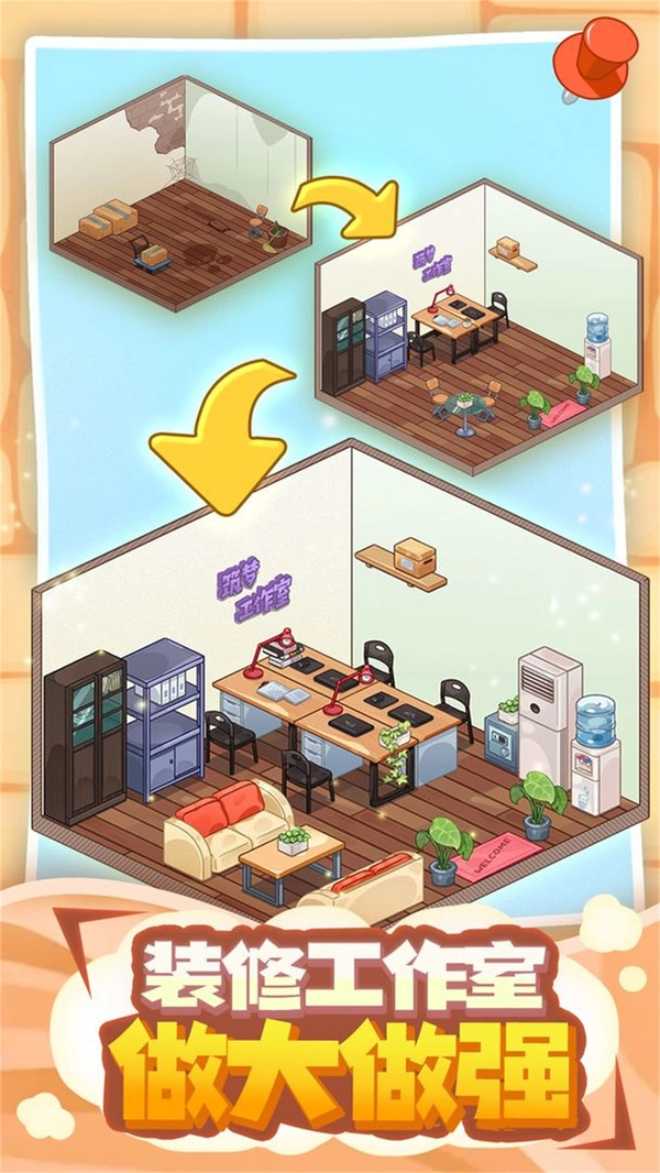 1.这是一款以装修公司为题材的经营游戏,玩家经营的工作室可以为顾客量身定做家装。