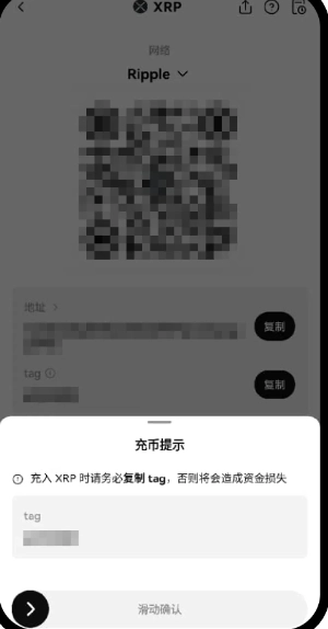 若您所选币种的网络要求填写标签(也叫Tag/Memo,一般是一串数字),系统会发出提示,在您【滑动确认】之后,就能查看并复制该币种对应的【充币地址】和【标签】了。