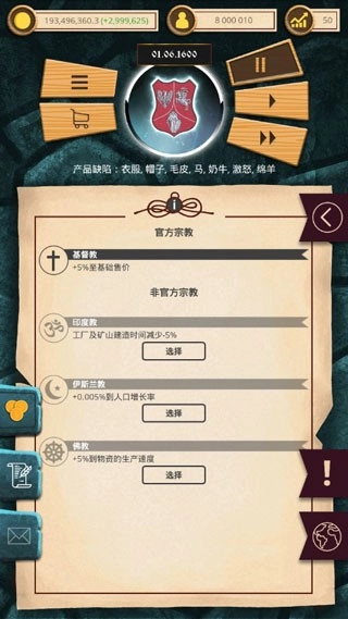 另外,游戏里法律的制定与宗教信仰的设定,也会对国家的各个方面起到一定的强化作用。