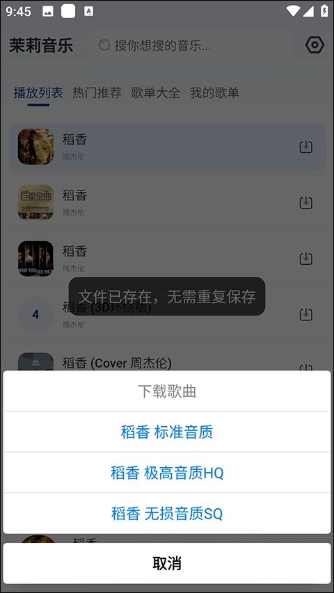 最重要的是有三种音质的选择,并且全部免费!