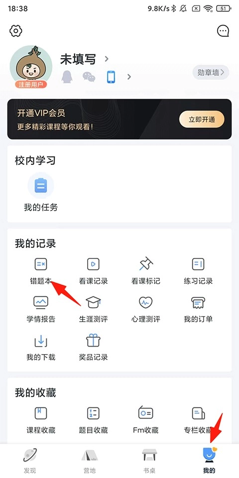 1、打开升学e网通,点击【我的】板块,进入后找到并点击【错题本】(当前该功能仅支持对错题进行重做或重练操作)。