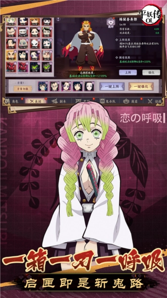 这里有超多鬼灭之刃的动漫角色等着你来养成,记得合理培养他们哦