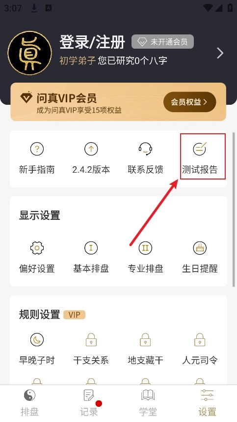 2、进入个人中心后选择测试报告。