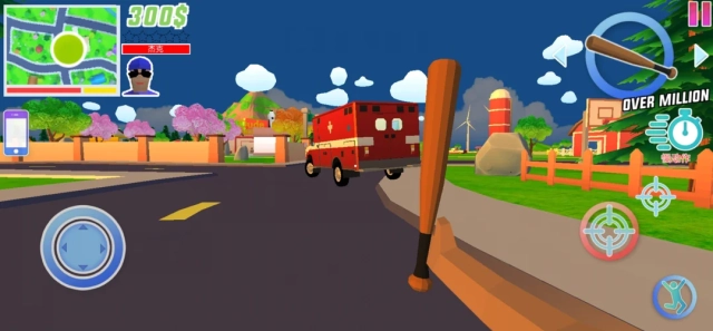 另外,正版开放世界沙盒模拟器的操作方式也十分简单,玩家只需通过虚拟摇杆就能控制角色移动,同时还能获得各种道具进行体验,像手榴弹、棍子、美元等都包含在内。而最有趣的是,居然可以在大街上随意扔钱,这真的挺有意思的!