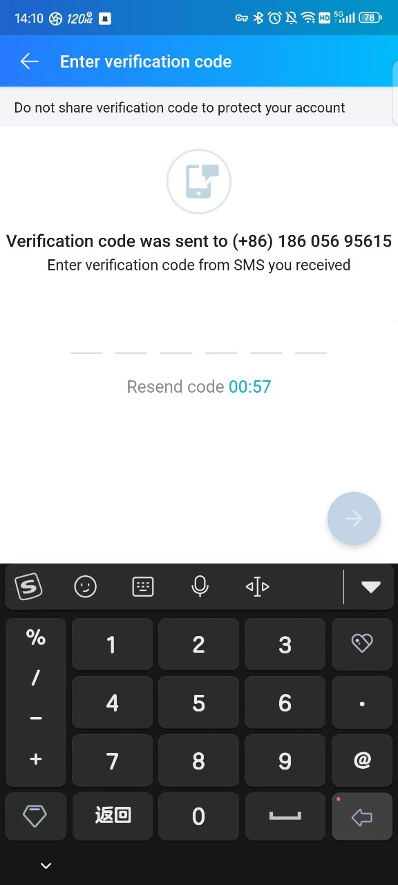 4、确认号码,发送验证码。