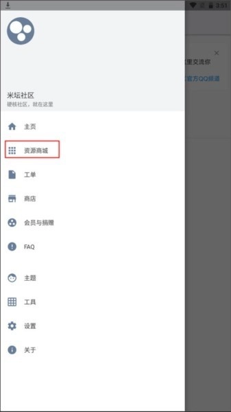 1、在使用资源包之前需要先登录账号,之后再次点击左上角的三横图标,接着点击资源商城即可。