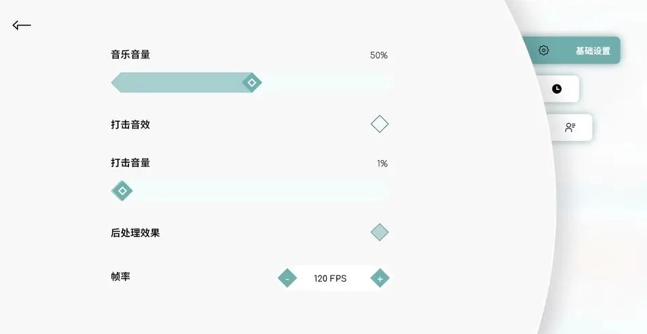 打击音量:开启打击音效后,音量百分比数值越大,打击音效的音量就越高;当百分比为0%时,打击音量将被关闭。