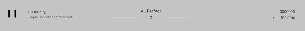 右上角显示分数与实时ACC,左上角展示曲名和曲师,暂停键需连续点击两次。