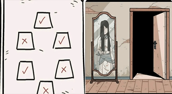 4、进入白门后面的房间,先拿走抽屉里的棋子,再观察墙上的画里种子生长的状态和手指的方向(会有所变化,根据实际情况来),接着打开窗户在左上角树冠上找到第一只猫头鹰。注:游戏中藏有九只猫头鹰,注意寻找哦。