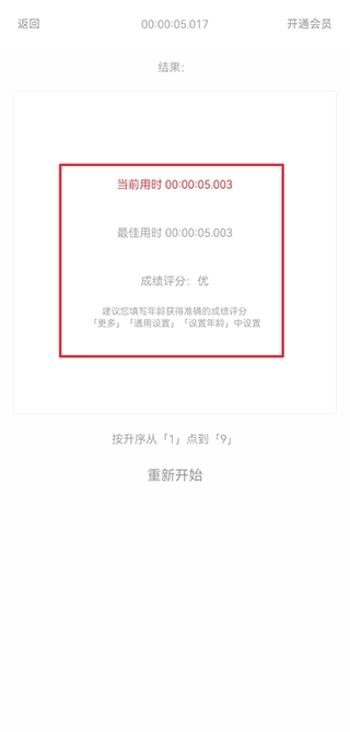 3、点完之后系统会根据你所画的时间评分,用时越少,说明注意力越好