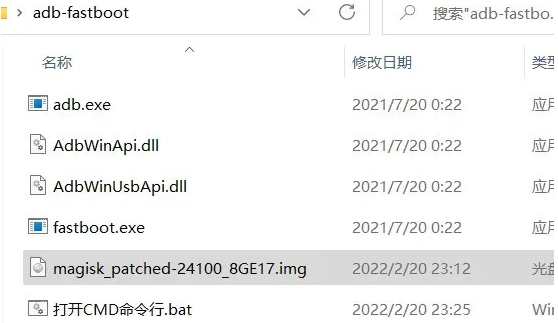 1 把手机里的 magisk_patched-xxxx_xxxx.img 文件复制到 adb-fastboot 文件夹当中。