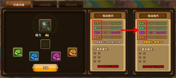 莉娜教官还有个小技巧要告诉大家:时装洗炼时战力会变动,这对洗炼速度和竞技体验影响不小。所以我们可以先洗炼别的时装,之后用【时装转换】功能转到自己喜欢的时装上。当然啦,直接把想洗炼的时装脱下来洗炼也没问题。