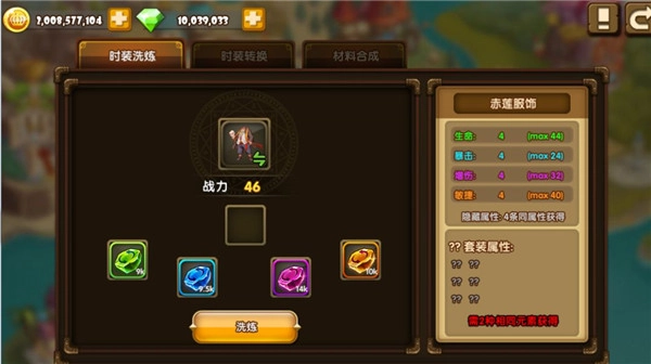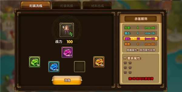 将紫色属性洗练成任意单一属性(即洗出最大值),这里我们洗出了太阳属性,具体效果如下图所示: