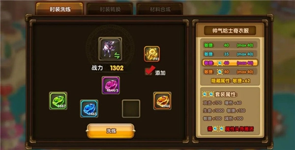 将橙色属性的洗练效果调整为与紫色属性一致,同时新增道具【卓越元素石】;使用该道具后,即可洗练出带有双属性的套装标识,具体效果如下图所示: