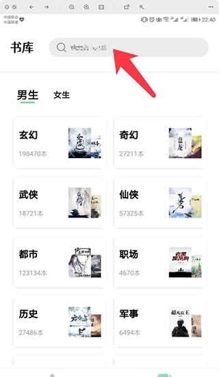 进入【书库】页面后,点击页面顶部的【搜索栏】,即可开始查找所需书籍。