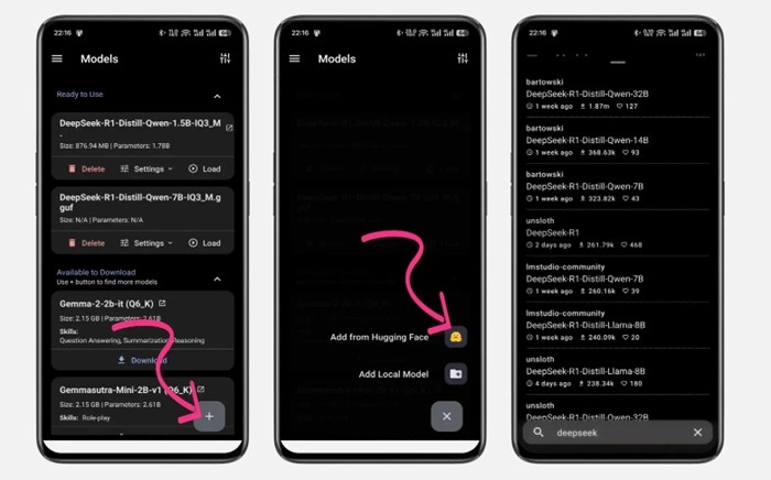 其他AI大模型,像DeepSeek这类的,只需点击右下角的添加按钮,就能把手机里已有的优质模型加载进来了。