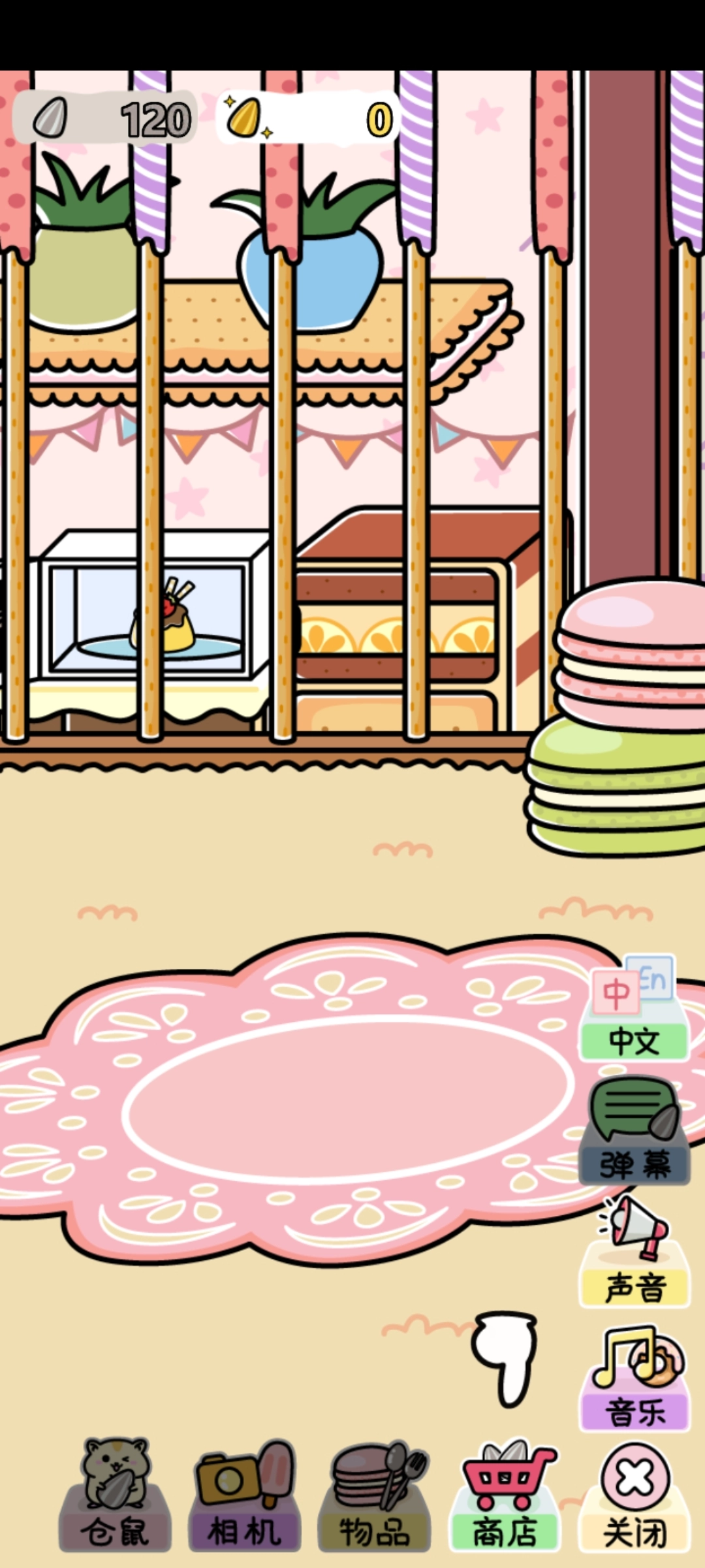 你可以摆放各类物品来吸引仓鼠过来玩耍,这时候你能去商店挑选想买的东西,像选个草莓蛋糕就很不错。