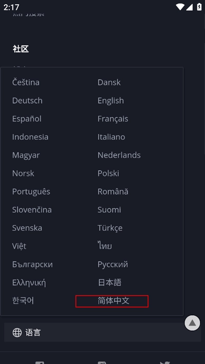 下滑到最后选择语言;