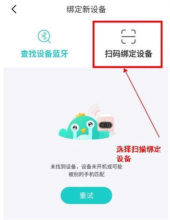 然后用户可以在页面内选择点击“扫码绑定设备”。