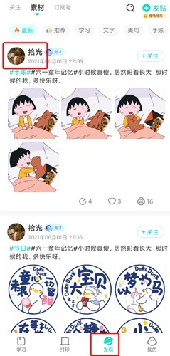 发现页面:用户可以看到其他用户发布的朋友圈;