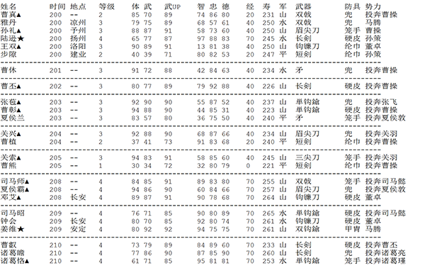 LEVEL(武将等级):打倒一定的经验值后会提升,这会影响武力与部队的编程。