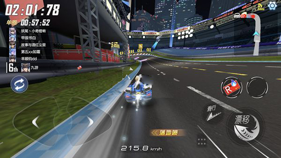 在游戏中,玩家通过屏幕虚拟摇杆或重力感应来控制赛车方向。虚拟摇杆位于屏幕左侧,左右滑动可精准调整赛车行驶方向;重力感应模式下,玩家倾斜设备就能使赛车转向。屏幕右侧设有氮气加速、刹车、漂移等功能按钮。点击氮气加速按钮,赛车瞬间获得爆发性速度提升;刹车按钮用于减速,控制赛车节奏,比如在过弯前提前减速,避免冲出赛道;漂移按钮按下后,赛车进入漂移状态,持续漂移可积攒氮气,松开按钮完成漂移操作。此外,部分赛车还有独特的主动技能,在合适时机点击技能按钮即可释放,如有的赛车技能可瞬间提升速度并获得护盾,保护赛车免受碰撞影响。