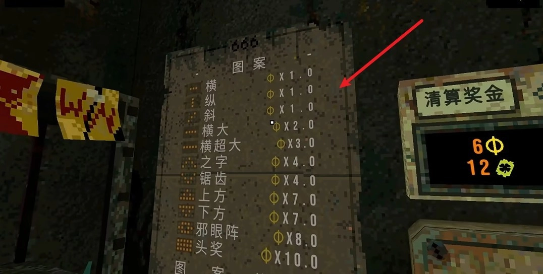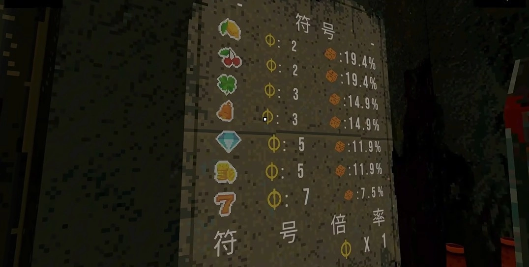 5、幸运机两侧的墙上,还有符号和团相关的倍率可以查询。