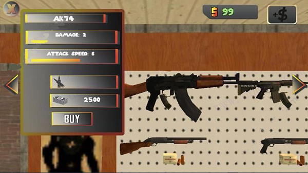 6、每种武器我们可以看到名称、伤害、攻击速度,子弹,价格,比如说AK74需要2500美金。