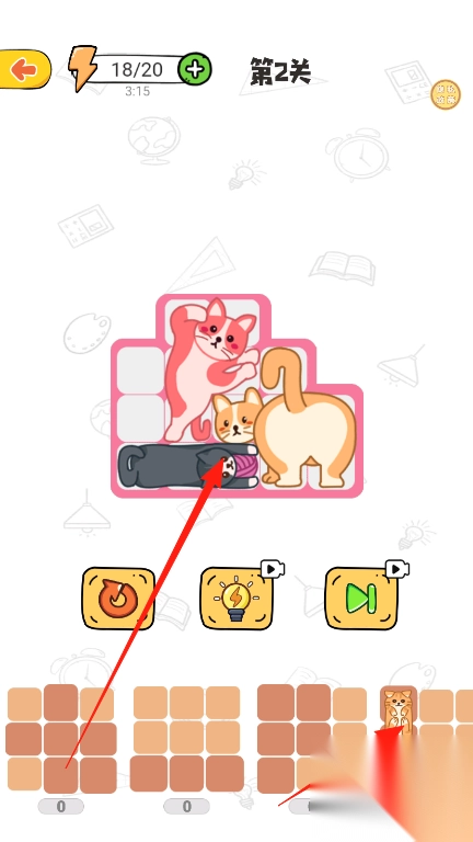 2、图案匹配策略:按照猫咪图案所具有的特点,像是耳朵、尾巴的形状之类,去寻觅与之相符的空间,并进行精准放置,杜绝盲目尝试。